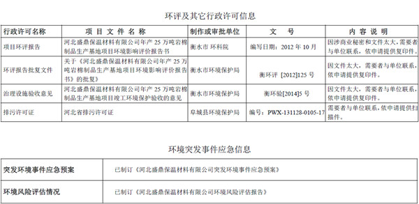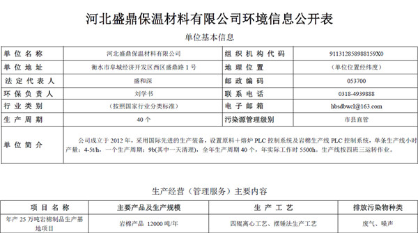 河北盛鼎保溫材料有限公司環境信息公開表